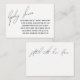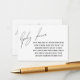 Si vous êtes en train d'accueillir une douche d'affichage sans cadeau pour une future mariée, cette carte simple pourrait être le choix pour vous. En utilisant une police de caractères manuscrite mince et moderne, j'ai d'abord ajouté un en-tête qui dit "douche d'affichage" sur le devant, et "doué d'amour de :" pour le côté de la balise cadeau. Un champ de modèle a été mis en place pour donner des instructions aux clients qui n'enveloppent pas leur cadeau. N'hésitez pas à modifier le libellé si nécessaire. Toutes les polices et les couleurs peuvent être modifiées à votre gré.