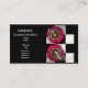 Cartes de visite avec ma conception de deux tasses sur une table à damiers contre un arrière - plan noir.