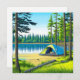 Garder en contact avec la carte postale. Art Ai représentant une tente dans les bois par un lac joli art numérique campant photo thématique.