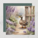 Carte de vœux vierge avec canard à l'aquarelle mignon et lavande. Beau design de faune. Version dos vert foncé.