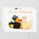 Canards en caoutchouc mariés s'embrassant. Invitation de mariage ou carte mignonne qui peut être personnalisée avec votre propre texte, noms, date et images.