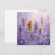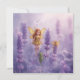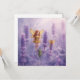 Dans les champs de lavande en fleurs, trois êtres magiques se rassemblent — une fée aux ailes dorées, un lutin joueur et un compagnon feuillu.