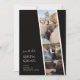 Présentant notre fascinant mariage "Capture Love" Save the Date Card, un mélange enchanteur de nostalgie du stand photo et d'esthétique contemporaine. Ce design unique résume l'essence de votre voyage ensemble, invitant les proches à marquer leur calendrier pour votre journée spéciale. L'arrière - plan dégage un air d'allure vintage, qui rappelle les bandes classiques des cabines de photos qui renferment des souvenirs chéris. Les tons modernes de noir et blanc forment le fondement de cette palette de couleurs tendance, évoquant les sentiments de romantisme et d'intemporalité. Ces teintes s'entrelacent gracieusement, créant un cadre harmonieux qui accentue le point central de la carte. Au premier plan, un agencement astucieux de vos photos fiançailles préférées occupe le devant de la scène. Chaque cadre est un moment chéri figé dans le temps, invitant les invités à partager votre joyeux voyage. L'appariement des polices pour le texte est une incarnation de l'élégance moderne. Les principaux détails, tels que les noms du couple et la date du mariage, sont joliment écrits dans une police serif sophistiquée. Ceci vient compléter le texte de support, qui utilise une police de calligraphie élégante. La combinaison reflète non seulement la dualité de votre histoire d'amour, mais ajoute également une touche de raffinement au design général.
