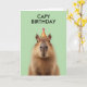 Cute capybara wearing a colorful birthday hat, radiating cheerful party vibes. Perfect for fun birthday cards, invitations, or animal lovers’ decor.