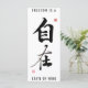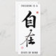 Caractère "Liberté/Libre, Indépendant" Sur les sceaux rouges : Inscription "paix/calme dans le coeur" et nom du calligraphe. L'imprimé reproduit la calligraphie manuscrite de l'auteur original.