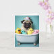 Joignez-vous à ce Carlin ludique pendant qu'ils trempent dans les suds et se détendre dans la baignoire. Le design, mignon et décalé, vous apportera un sourire au visage et égayera n'importe quelle chambre. Parfait pour les amoureux de les chiens, cette charmante illustration capture la joie et la relaxation du temps de bain pour votre ami furry.