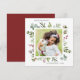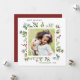 Cette carte carrée de vacances comporte des baies rouges, des branches de pin, de l'eucalyptus et des feuilles vertes peints à l'aquarelle avec les mots « Joyuses Fêtes ». Personnalisez-la en changeant l'image et le texte par vos propres photos et texte.