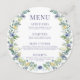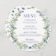 Offrez-vous une élégance éclatante grâce à notre carte de menu rustique mariage de printemps/été. Doté d'une couronne de fleurs bleues et jaunes et d'un délicat texte bleu, il ajoute une touche parfaite pour améliorer votre expérience culinaire. Explorez notre sélection pour un complément saisonnier à votre célébration.