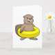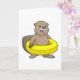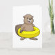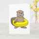 Carte Castor en train de nager avec une bouée de natatio