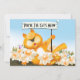 Cat in a Flower Garden holding a Sign.