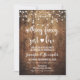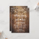Invitation à la fête de mariage en fuite avec fond en bois rustique et guirlandes lumineuses. Rien de fantaisiste, juste une invitation de réception de mariage rustique par amour."évasion