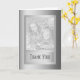 La carte de vœux d'anniversaire de mariage Cercle d'argent 25e anniversaire de mariage comporte un fond argenté délimité par une bordure argentée métallique tout aussi brillante et un espace à l'avant pour ajouter votre photo. Élégante carte de remerciement aux invités qui ont assisté à la célébration de l'anniversaire de mariage d'argent [25e anniversaire de mariage]. © Morning 6