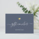 Bon cadeau ! Cette carte cadeau coeur or moderne chic carte cadeau pour vos clients dispose de calligraphie script écrit à la main avec vos noms dans la typographie serif élégante. C'est l'élégant bleu marine poussiéreux avec votre logo personnalisé sur le dos.