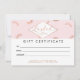 Carte Certificat cadeau en or rose/Rose texte pointillé