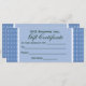 Carte Certificat cadeau motif bleu