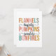 Cette conception colorée et amusante de l'automne présente une liste de préférés de l'automne, y compris "Chemises de flanelle", "Promenades en charrette à foin", "Citrouilles", "Pulls" et "Feux de joie". Le texte est présenté dans une police en gras et en majuscules avec chaque mot rempli d'une teinte chaude et terreuse différente - allant des roses et des oranges doux aux verts et bleus atténués - capturant parfaitement l'esprit cosy et vibrant de la saison. Les mots "Promenades en charrette à foin" et "Pulls" sont écrits dans un script fluide, ajoutant une touche d'élégance et créant un joli contraste avec les lettres majuscules en gras. Des fioritures décoratives encadrent le texte en script, ajoutant au charme et à l'attrait général. Cette conception est parfaite pour