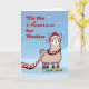 C'est la saison des lainages, carte de vœux à thème lama pour Noël. Texte à l'intérieur de la carte : "Je lama vous souhaite un très Joyeux Noël et une Bonne Année". Un lama mignon et adorable habillé d'un chapeau de Père Noël, d'une écharpe rayée et de chaussettes arc-en-ciel est représenté sur la couverture. Scène hivernale avec de la neige qui tombe. Lettres rouges sur la couverture. Sortez vos lainages (vêtements chauds) et célébrez les fêtes dans le style lama dramatique. Art, image et vers copyright © Shoaff Ballanger Studios.