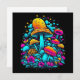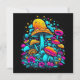 Art néon coloré avec champignons et fleurs bleus et roses et un arrière - plan noir.