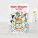 Une carte d'anniversaire légère à personnaliser pour n'importe quel âge, avec des chats chantant 'Joyeux anniversaire à vous !' et un gâteau d'anniversaire avec des bonbons, d'une illustration d'aquarelle fantaisiste de Judy Adamson. Vous pouvez également personnaliser le message interne.