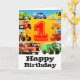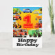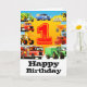 Neuf camions colorés amusants entourent un grand nombre 1! Ajoutez votre âge ! Un mélangeur de ciment, bulldozer, camion à benne, tracteur vert et remorque, camion de pompier rouge, pelle jaune ! Toutes sortes de véhicules de construction pour enfants ! Parfait pour votre camion de pompier, creveur, camion ou tracteur fou 1 an bébé garçon à son 1er anniversaire. Merveilleux pour la fête d'anniversaire à thème du camion de votre fils ou petit-fils de 1an. ©Paul Stickland