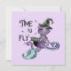 Ce design mignon comporte un mignon chat sorcier violet volant avec l'expression "Time To Fly". Il est parfait pour une fête d'Halloween.