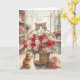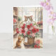 Carte Chat arrangeant des roses dans un panier de fleurs