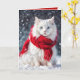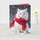 Carte Chat blanc de Noël avec Écharpe rouge