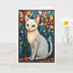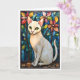 Carte Chat blanc de style vitrail avec des fleurs