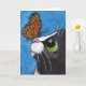 Carte de voeux lunatique d'art de chat. Masquez à l'intérieur. Chat noir et blanc avec un papillon de vice-roi sur le bout de son nez. Créé de copyright original de peinture Lisa 2009 Marie Robinson