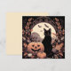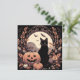 Voici une carte d'Halloween cool avec un chat noir et une citrouille. Le design est dans des couleurs d'automne avec des feuilles orange et noires et des chauves-souris. C'est une excellente carte d'Halloween et est parfaite pour les salutations de la saison effrayante, les invitations ou pour accompagner un cadeau.
