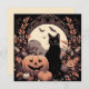 Voici une carte d'Halloween cool avec un chat noir et une citrouille. Le design est dans les couleurs de l'automne avec des feuilles orange et noires et des chauves-souris. C'est une excellente carte d'Halloween et elle est parfaite pour les salutations de la saison effrayante, les invitations ou pour accompagner un cadeau.
