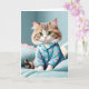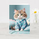 Un mignon chaton blanc en pyjama pour anniversaire. Le texte peut être modifié.