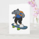 Carte Chat en Skateboarder avec planche à roulettes