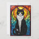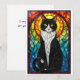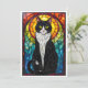 Carte Chat en smoking noir et blanc de style vitrail pla