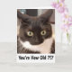 Un chat noir et blanc avec une expression étonnée au loin observée avec la question "vous êtes combien vieux ?". Tout le texte peut être personnalisé avec vos propres messages.