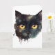 Carte Chat noir à l'aquarelle dégoulinante