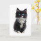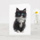 Carte Chat noir et blanc à poils longs Yeux bleus vides