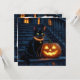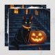 Une jolie carte Halloween sur laquelle vous pouvez personnaliser le message. Une jolie illustration d'un chat noir assis à côté d'un jack-o-lanterne illuminé.