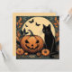 Célébrez la saison effrayante avec style avec cette carte de vœux carrée de 5,25" x 5,25" qui présente une illustration audacieuse et stylisée d'un chat noir et d'une citrouille lumineuse. Une pleine lune lumineuse se lève à l'arrière-plan, jetant une douce lueur sur les chauves-souris silhouettées qui volent à travers le ciel nocturne, complétant cette scène d'Halloween parfaitement sinistre. Cette carte est une version moderne de l'imagerie traditionnelle d'Halloween - à la fois effrayante et charmante, ce qui en fait un choix exceptionnel pour les amateurs de tout ce qui concerne octobre et l'automne. La forme carrée et élégante ajoute une touche contemporaine, tandis que les motifs classiques d'Halloween lui donnent un attrait intemporel.