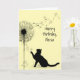 Silhouette de chat noir sur arrière - plan jaune pâle avec pissenlit et graines pour anniversaire général. Le texte peut être modifié. La couleur Arrière - plan peut être modifiée.