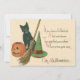 Carte Chat noir souriant Jack-o'-lantern sorcière de la
