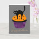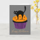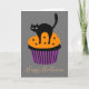 Halloween joli chat noir sur cupcake. Couleurs thématiques noir et orange. Thème joli chat noir gothique.