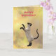 Un mignon chat siamois sur ses pattes postérieures jouant avec un message d'anniversaire.