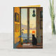 Cette belle carte présente un chat noir près d'une fenêtre regardant un coucher de soleil. À l'intérieur se trouve un message éditable. Vous pouvez l'utiliser comme carte "tu me manques", carte d'anniversaire, excuses, lettre d'amour, condoléances, etc. Crédit artistique : Lynda McDaniel-Smith, 2024.