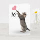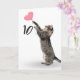 Chatte de tabby gris avec ballon de coeur rose pour 10e anniversaire sur arrière - plan blanc. La couleur Arrière - plan peut être modifiée