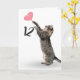 Chatte de tabby gris avec ballon de coeur rose pour 12ème anniversaire sur arrière - plan blanc. La couleur Arrière - plan peut être modifiée