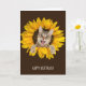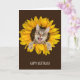Chatte de tabby souriant au tournesol jaune pour l'anniversaire le arrière - plan marron.