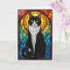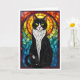 Carte Chat Tuxedo Noir et Blanc de Style Vitrail