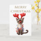 Cette adorable carte de Noël de chat mignon Funny comprend un chat mignon. Ce Chat Whimsical a un Gros Rudolph Nose, Antlers de Cerfs, et est enchevêtré dans les lumières de Noël. Parfait pour les Amoureux de les chats qui apprécient un petit Mischief de vacances ! Cette Carte de Chat de Noël a un Verse Amusant à l'intérieur. Personnalisez cette carte de Noël à votre contenu de coeur!