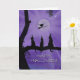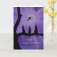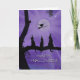 Merveilleux et mignon, cette Happy Halloween carte a trois sorcières noires dans un arbre qui regardent un autre chat sorcier passer ! Une façon amusante de souhaiter un Halloween "sorcier" heureux!